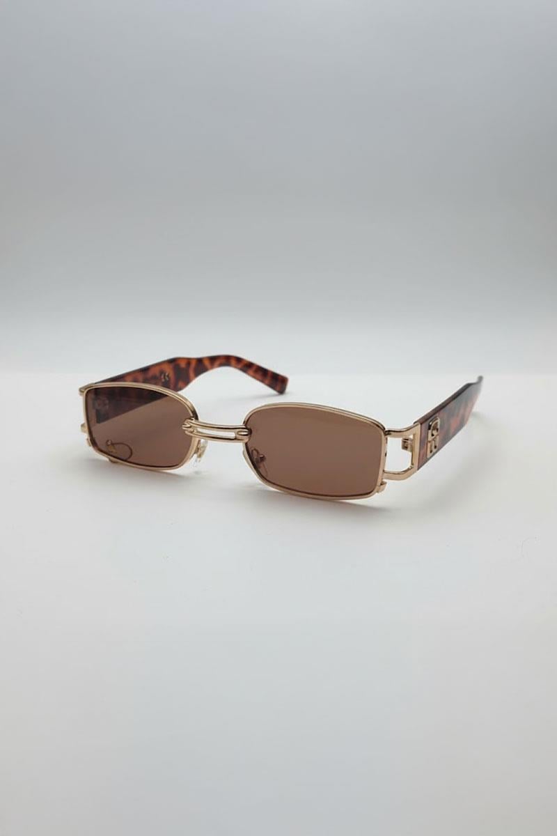 Kahverengi Gold Çift Köprülü Yatay Çerçeve Retro Güneş Gözlüğü (KGZ823)