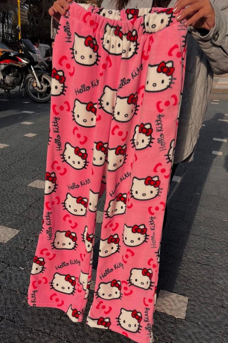Pembe Hello Kitty Collage Peluş Eşofman (KPJ133PEMBE)