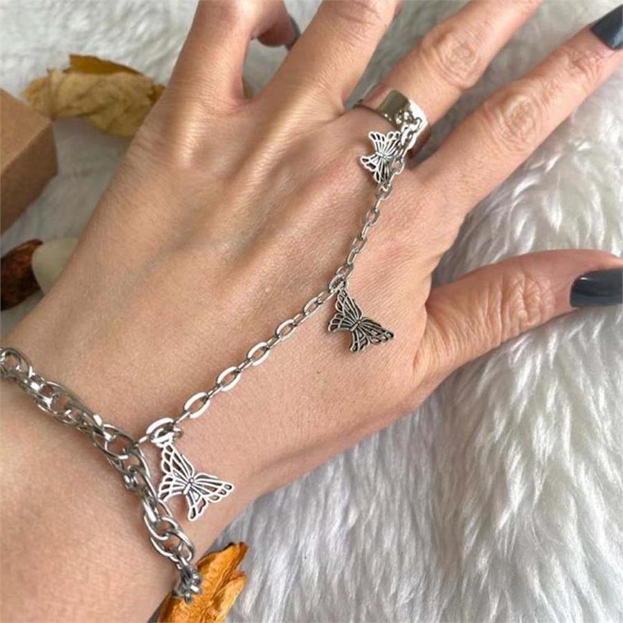3 Kelebekli Zincir Bileklikli Yüzük