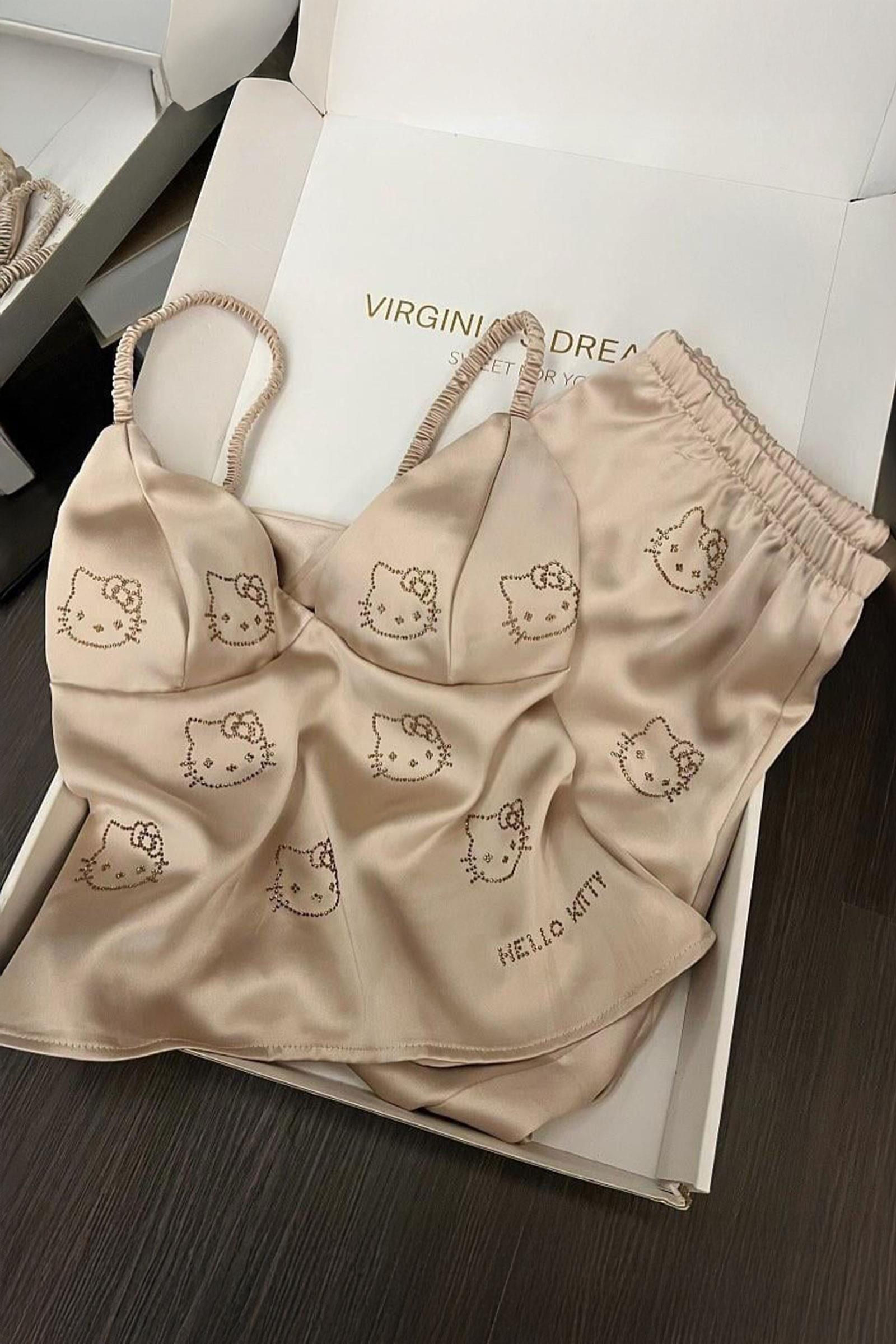 Bej Hello Kitty Askılı Y2K Şort Pijama Takımı (KHW016)