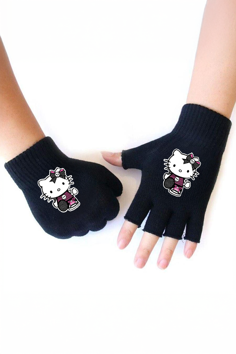 Gotik Hello Kitty Unisex Kesik Parmaklı Eldiven (KEL065)