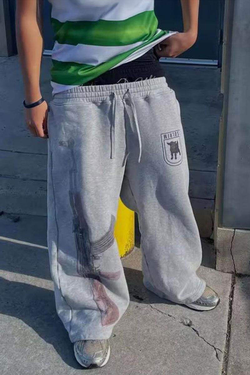 karakedi'nin gri melanj boxer belli AK-47 Harajuku Y2K unisex eşofman modeliyle tarzına asi bir dokunuş kat. Rahat kalıbı, dikkat çekici deseni ve Y2K havasıyla sokak modasında fark yarat!