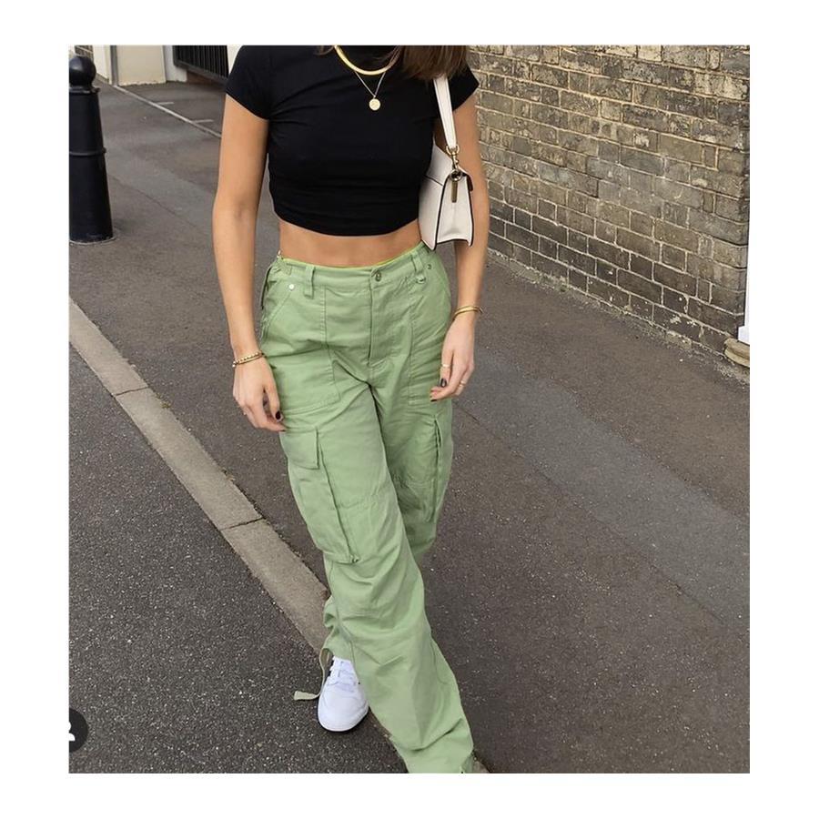Harajuku Su Yeşili Beli Lastikli Kargo Pantolon (KPT052)